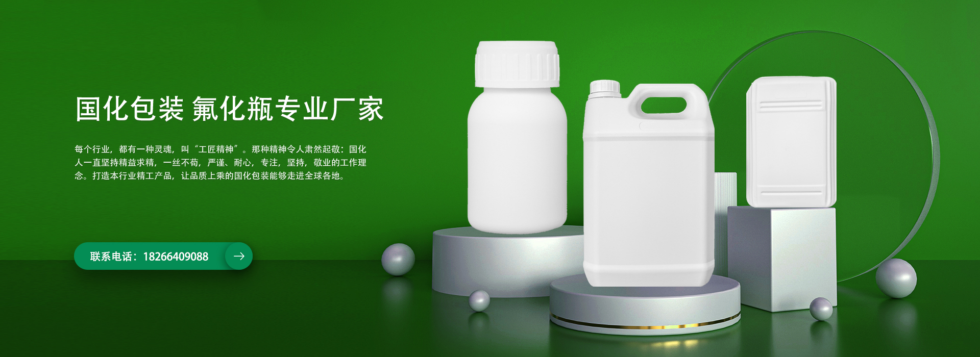 公司匯聚豐富經驗的技術人才,引進新的線上氟化技術,在德國設備的基礎上,生產高阻隔的氟化瓶,氟化瓶已被廣泛應用于化工領域(如農化,香精,香料,食品,油墨助劑及其它化工產品)并成為化工產品出口的包裝,除高品質的氟化瓶外,國化還利用設備,原料及工藝,生產具有世界品質的高密度聚乙烯(HDPE)包裝容器。